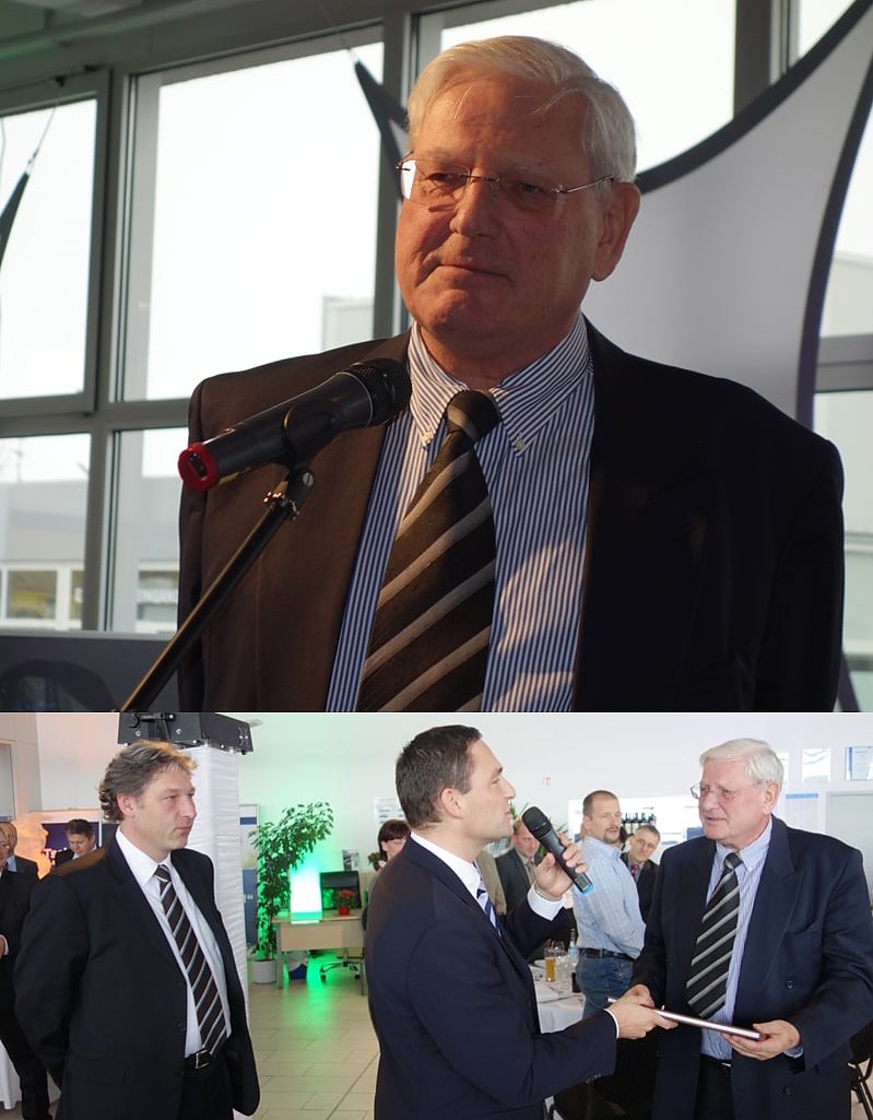 Seine Söhne Roman und Albert übergaben ihrem Vater ein wertig gestaltetes Buch mit zahlreichen Widmungen namhafter Persönlichkeiten aus der automobilen Welt. Albert Still nahm es mit stehender Ovation seiner Führungskräfte sichtlich gerührt entgegen.