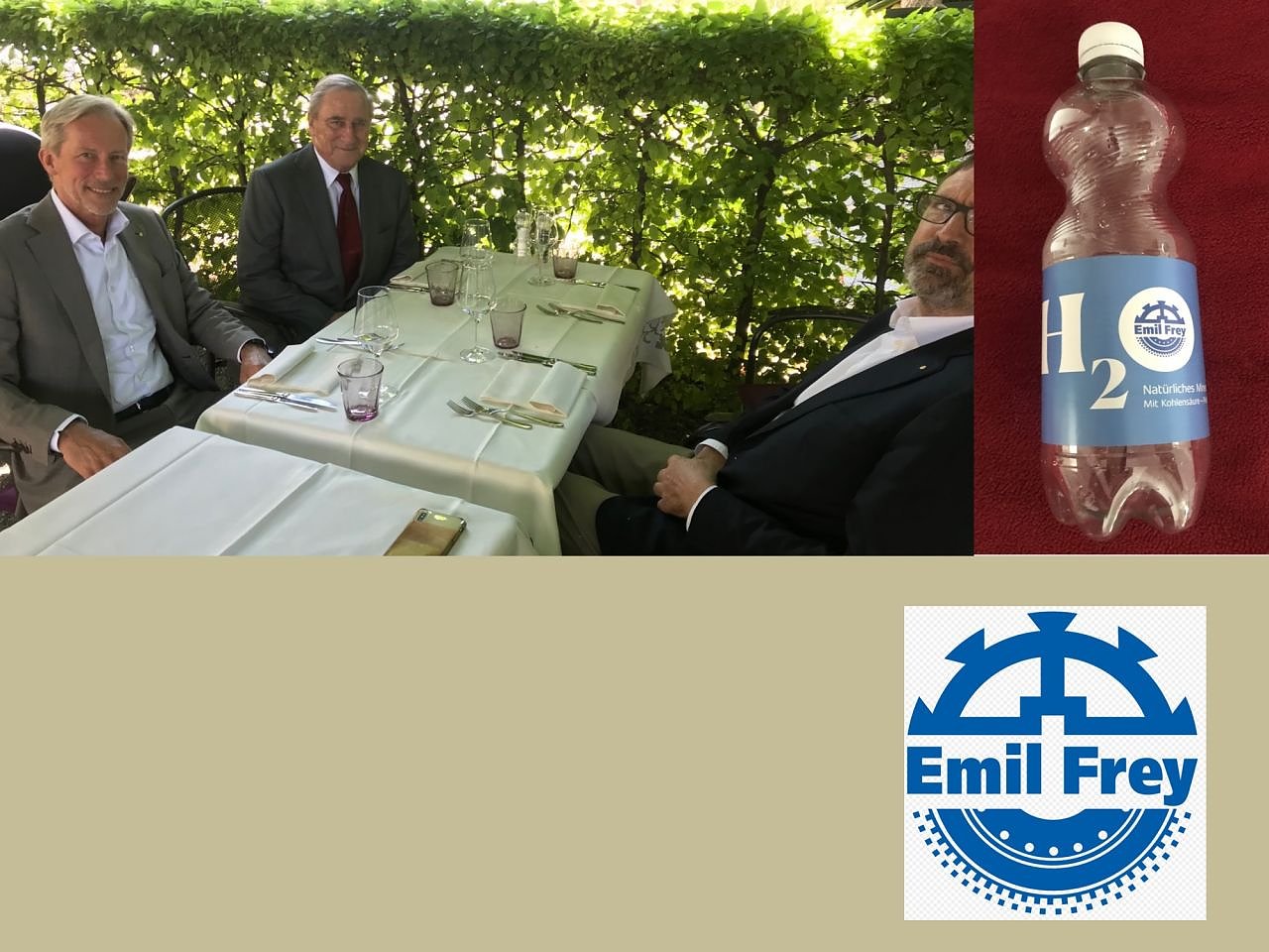 Seine Sekretärin offeriert zur Rückfahrt aus der Frey-Logistikwelt einen Spezialgruß aus der freien Natur: Knutwiler Wasser, aus dem Herzen der Schweiz.