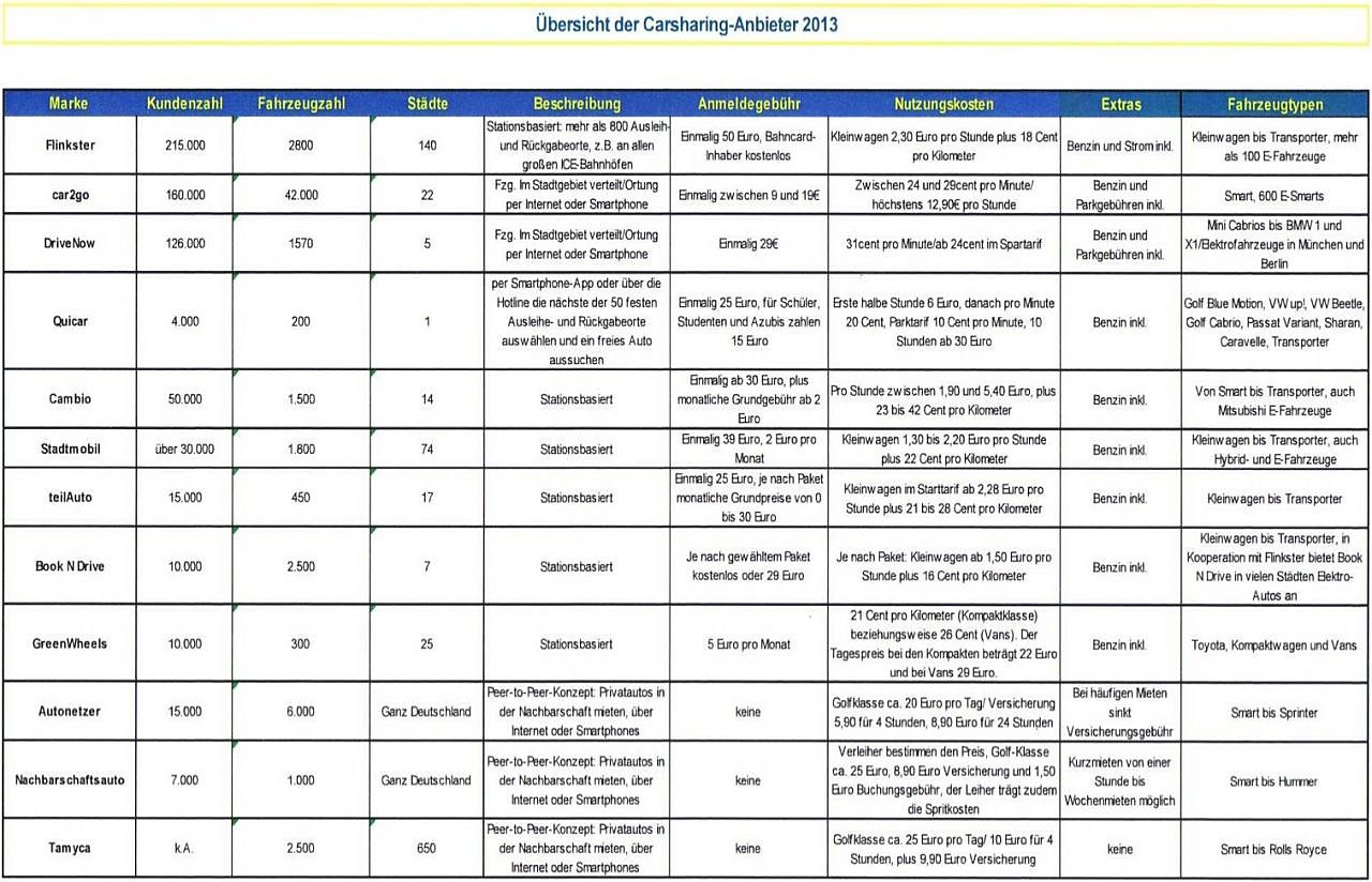 - Übersicht Carsharing-Anbieter 2013 (889 kByte)