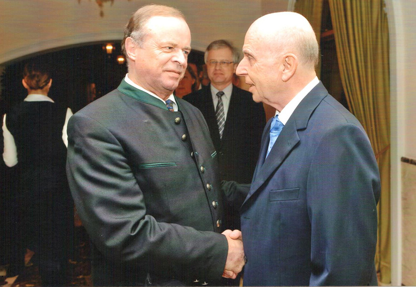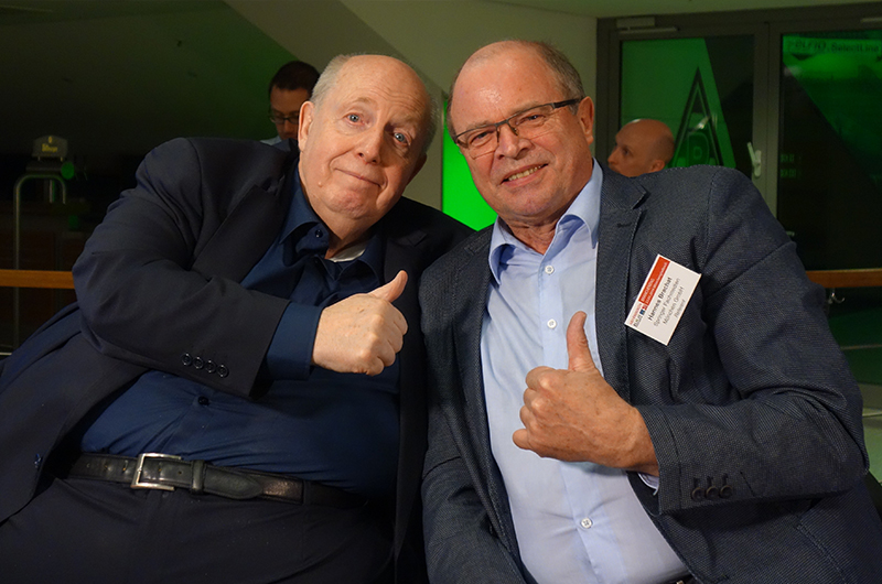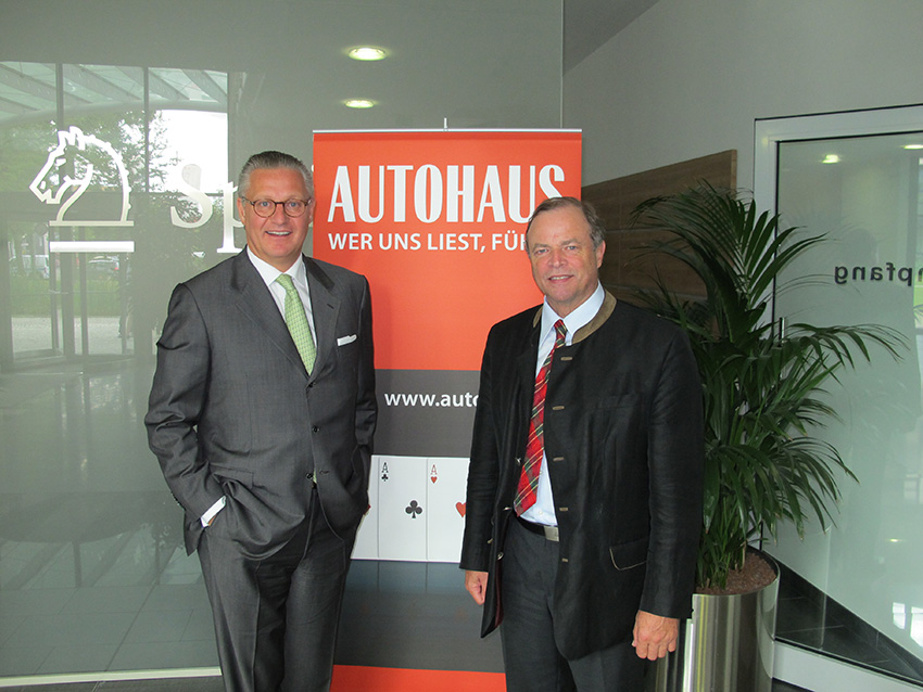 Prof. Hannes Brachat im Gespräch mit Olympiasieger und Weltmeister - 1983 in Linz - , Rudolf Angerer. Als Rudolf Angerer von der großen Berufsolympiade zurückkam, wurde ich Chefredakteur von AUTOHAUS. Es war mir ein großes Anliegen, ihn direkt an seiner Wirkungsstätte in seinem VW-Betrieb in Schierling/Regensburg aufzusuchen. Ich kenne wenige, mit denen man über Service so im Detail "fachsimpeln" kann wie mit ihm. Er ist inzwischen Obermeister der Kfz-Innung Regensburg-Kelheim und so gehört auch alle zwei Jahre unser gemeinsamer Auftritt bei seiner Innung zum "Automobilpolitischen Aschermittwoch" in Abensberg, den ich wesenhaft innitiiert habe, zu unseren "schönen Pflichten". Man wird von Rudolf Angerer noch weiteres in der Branche hören. Hier bei unserem letzten Auftritt am Aschermittwoch 2013 in Abensberg.