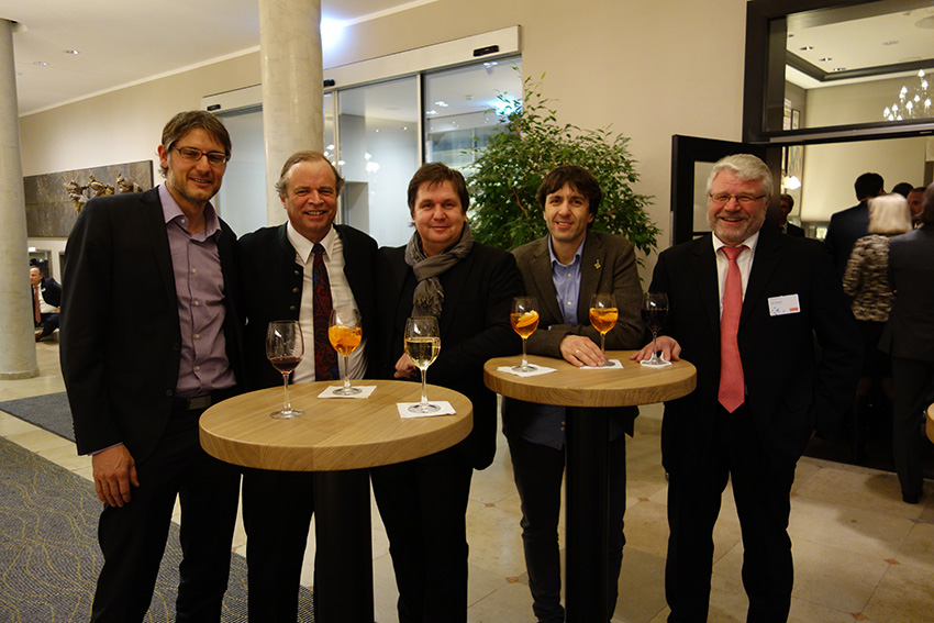 Großes Wiedersehen bei der VIP-Veranstaltung der Santander Consumer AG im Januar 2013 in München. Josef Eder, einer der größten Mehrmarkenhändler Deutschlands, angestammt Ford, aus Tuntenhausen - Bildmitte - mit Prof. Hannes Brachat und Kollegen. Die Eder-Gruppe ist gleichermaßen in der Landmaschinenbranche verwurzelt. Es erfüllt einen als Lehrer mit Stolz, die Stationen - wie bei Josef Eder -, vom Lehrling, zum Gesellen und zum großen Meister mit erleben zu dürfen. Unvergessen, seine mündliche Prüfung an der BFC zu Calw. Die war damals schon große Klasse. Jedes Wiedersehen hat u.a. großartigen humorigen Charakter.