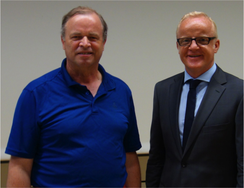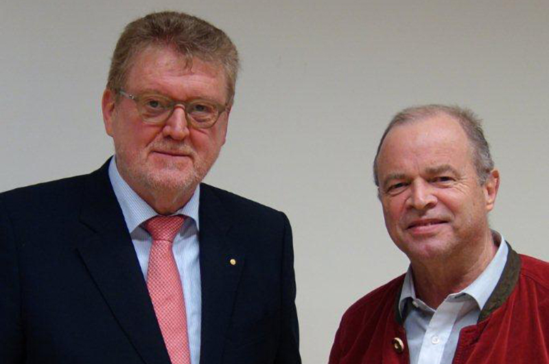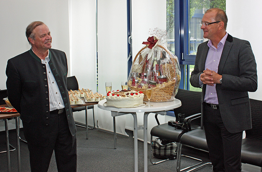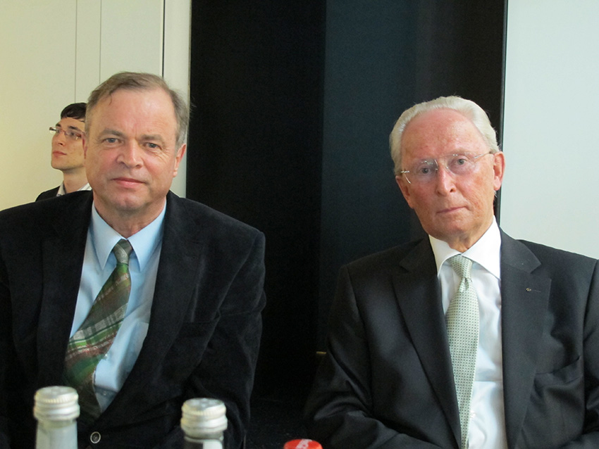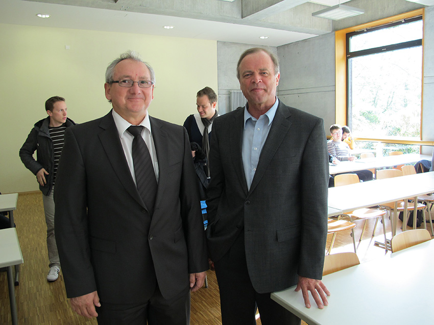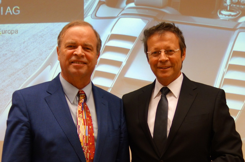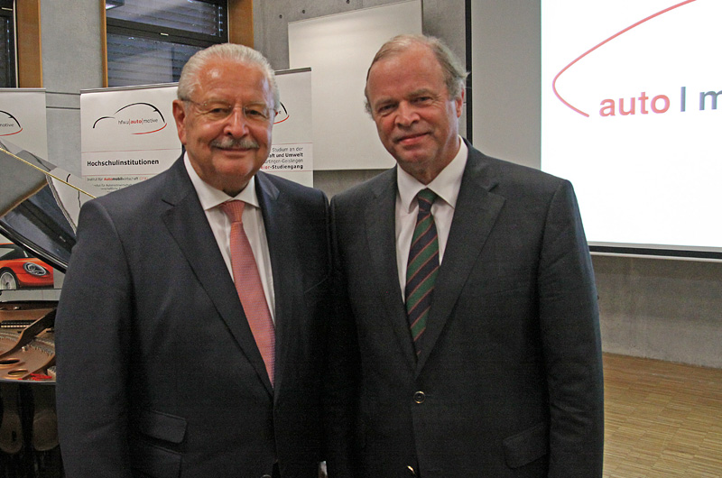 Prof. Dr. Willi Diez (re) initiierte zusammen mit Prof. Dr. Stefan Reindl am 27.6.2014 die Emeritierungsfeier für Prof. Hannes Brachat an der Hochschule für Automobilwirtschaft in Geislingen.