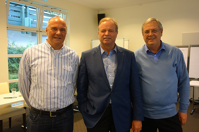 Führungskräftetreffen der MB-Gruppe Scholz Pickel (Bamberg, Erlangen u.a.) am 19. Oktober 2013 in Bad Griesbach. Moderator Prof. Hannes Brachat mit den Firmenchefs Michael Eidenmüller (li) und Michael Pickel. Inhalt der zweitägigen Veranstaltung waren die strategische Ausrichtung der Gruppe, Branchentrends der Zukunft, professionelles Gebrauchtwagenmanagement, Service-Marketing und virtuelle Vertriebsstrategie.