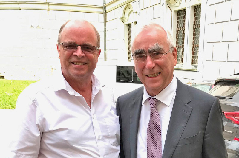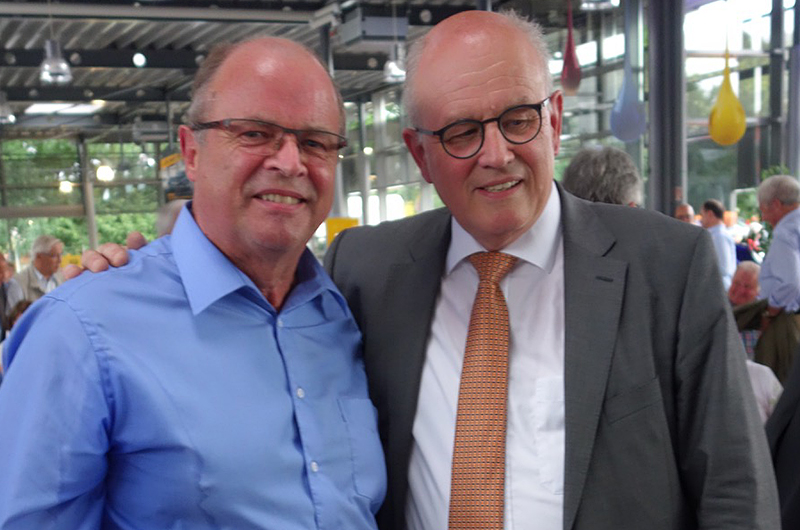 AH-Herausgeber Hannes Brachat mit Volker Kauder, CDU-CSU-Fraktionsvorsitzender im Deutschen Bundestag bei einer Wahlveranstaltung am 2. August 2017 in Göttingen. Brachat: "Wir kennen uns aus unserer gemeinsamen Zeit in der Jungen Union Singen-Gottmadingen. Das war nach langer Zeit ein herzliches Wiedersehen!"
