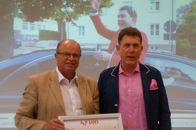 Wilfried Wilhelm Anclam, Inhaber und Gründer von AUTOLAND, größter und erfolgreichster Autodiscounter Deutschlands überreichte bei seinem Vortrag an der Hochschule Geislingen am 21. Mai 2014 AH Herausgeber Prof. Hannes Brachat abermals einen Scheck in Höhe von 10.000 EUR zur Förderung der Hochschularbeit. Anclams Vortrag können sie hier unter der Rubrik "Hochschule > Vorträge zum Download" einsehen.