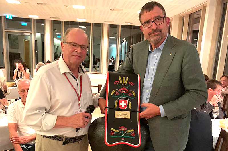 Auf der 29. AUTOHAUS-Sommerakademie, die AH-Herausgeber Prof. Hannes Brachat durchführte, überreichte am 27. August 2020 auf Herrenchiemsee Gerhard Schürmann, der Vorsitzende der Geschäftsleitung der Emil Frey Gruppe an Hannes Brachat für dessen Lebensleistung aus der Schweizer Traditionsgießerei Berger eine große, bunte Kuhglocke mit von Hand gestricktem Lederband. Inschrift: "Dank - Mit großem Respekt für die Lebensleistung". Da war einer sichtlich gerührt, Hannes Brachat.